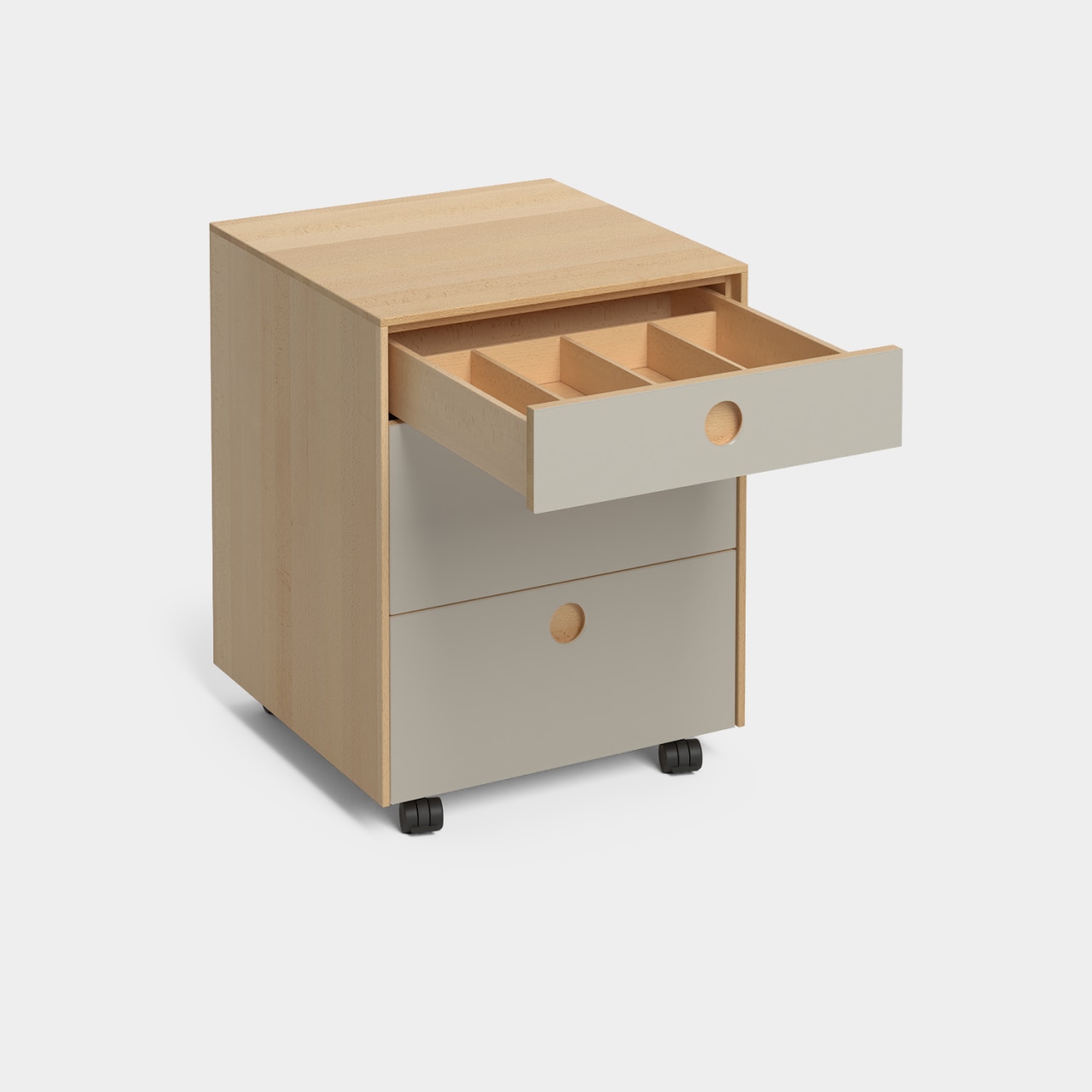Bei Schubladenaufteilung 1:2:2 oder 1:1:1:1 kann für die obere Schublade eine praktische Unterteilung gewählt werden
