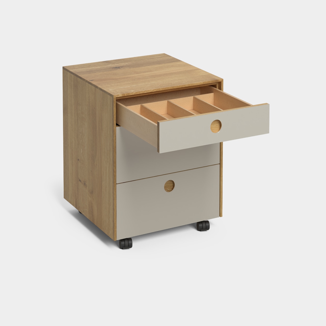 Bei Schubladenaufteilung 1:2:2 oder 1:1:1:1 kann für die obere Schublade eine praktische Unterteilung gewählt werden